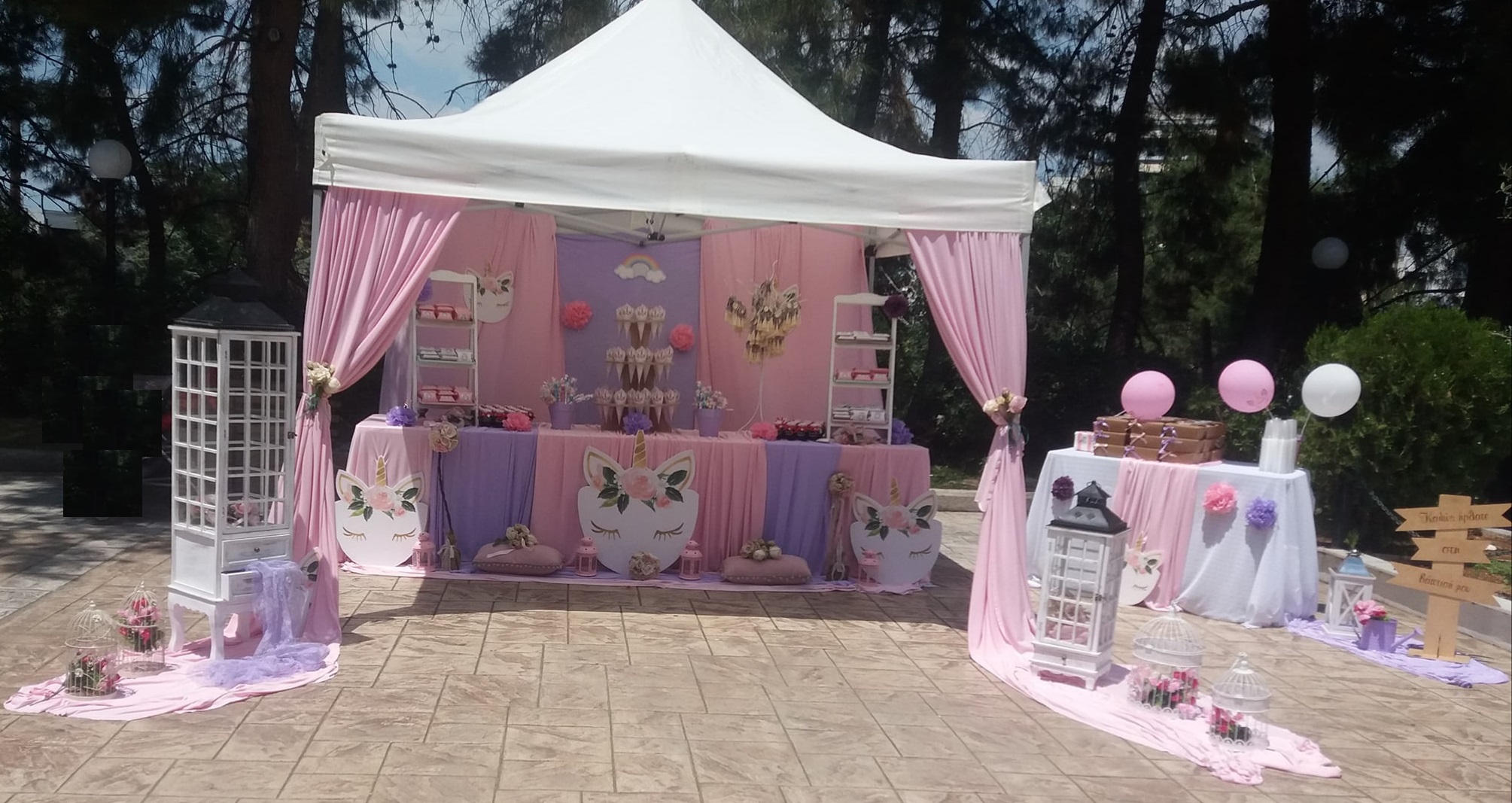 Στολισμός βάπτισης μονόκερος λιλά ροζ